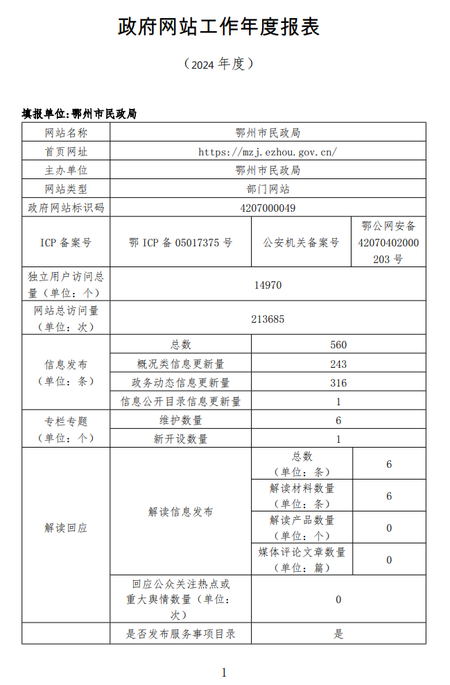 鄂州市民政局2024年度政府网站工作年度报表