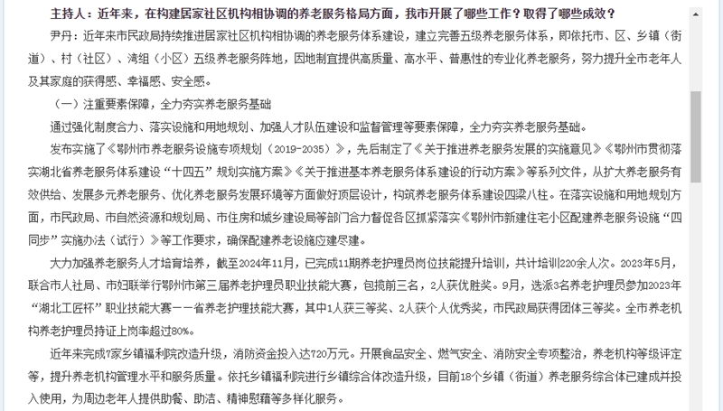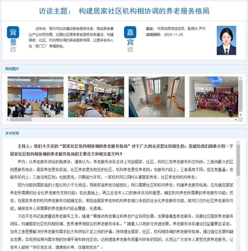 【在线访谈解读】:构建居家社区机构相协调的养老服务格局